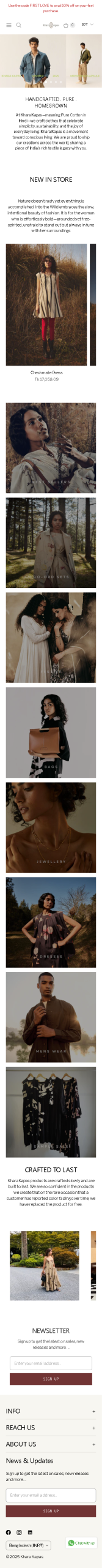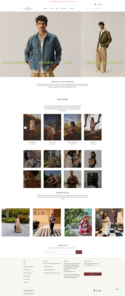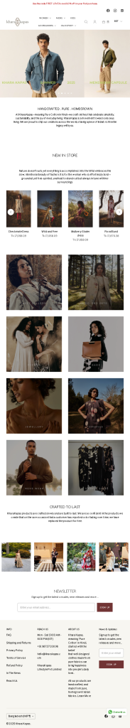 The existing layout did not reflect the handcrafted, minimalist style of the brand. Product details like fabric, fit, and care were not clearly presented, and category navigation felt incomplete for buyers browsing clothing collections.